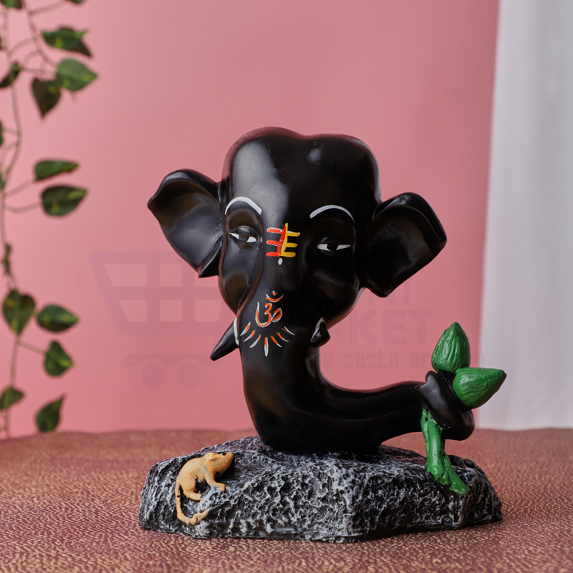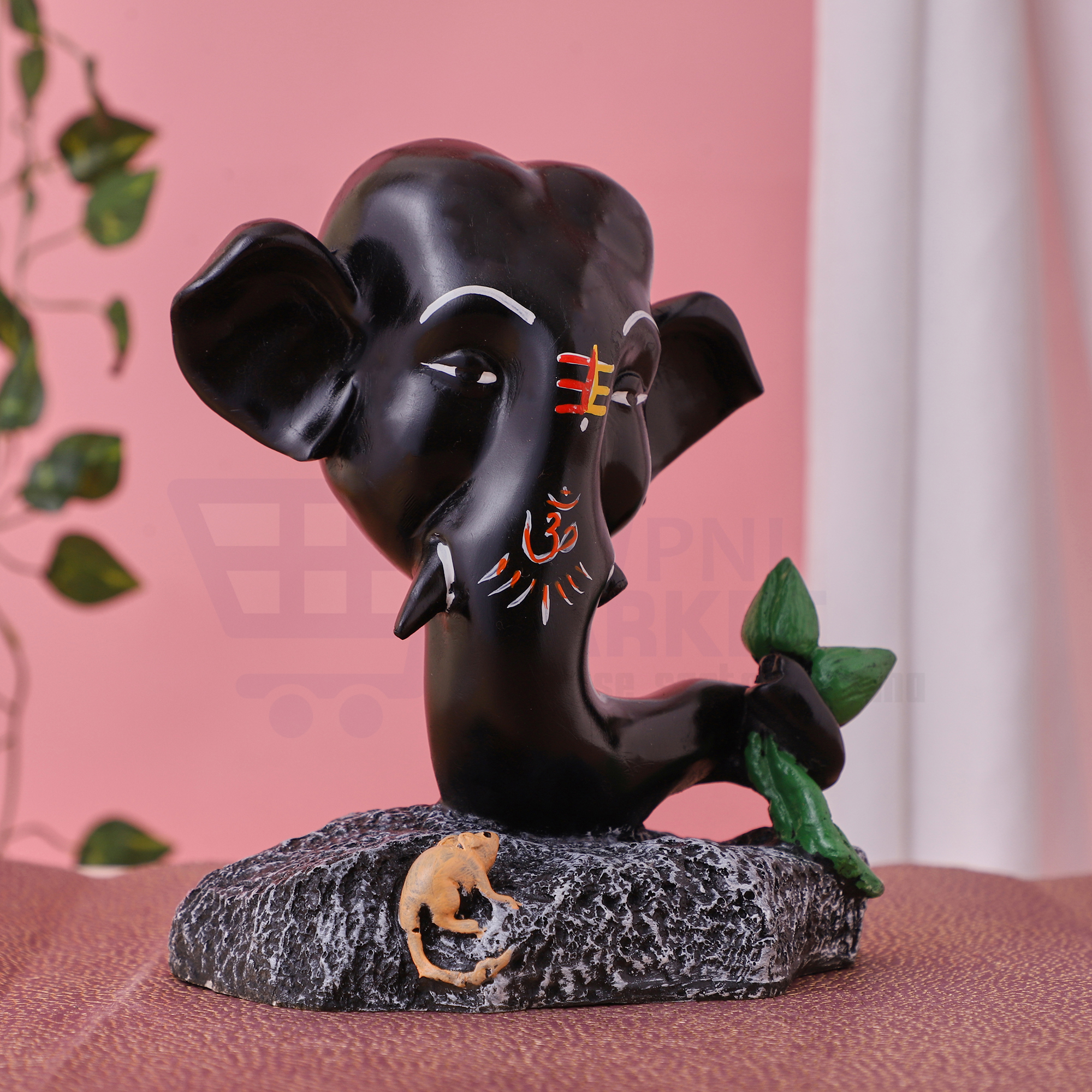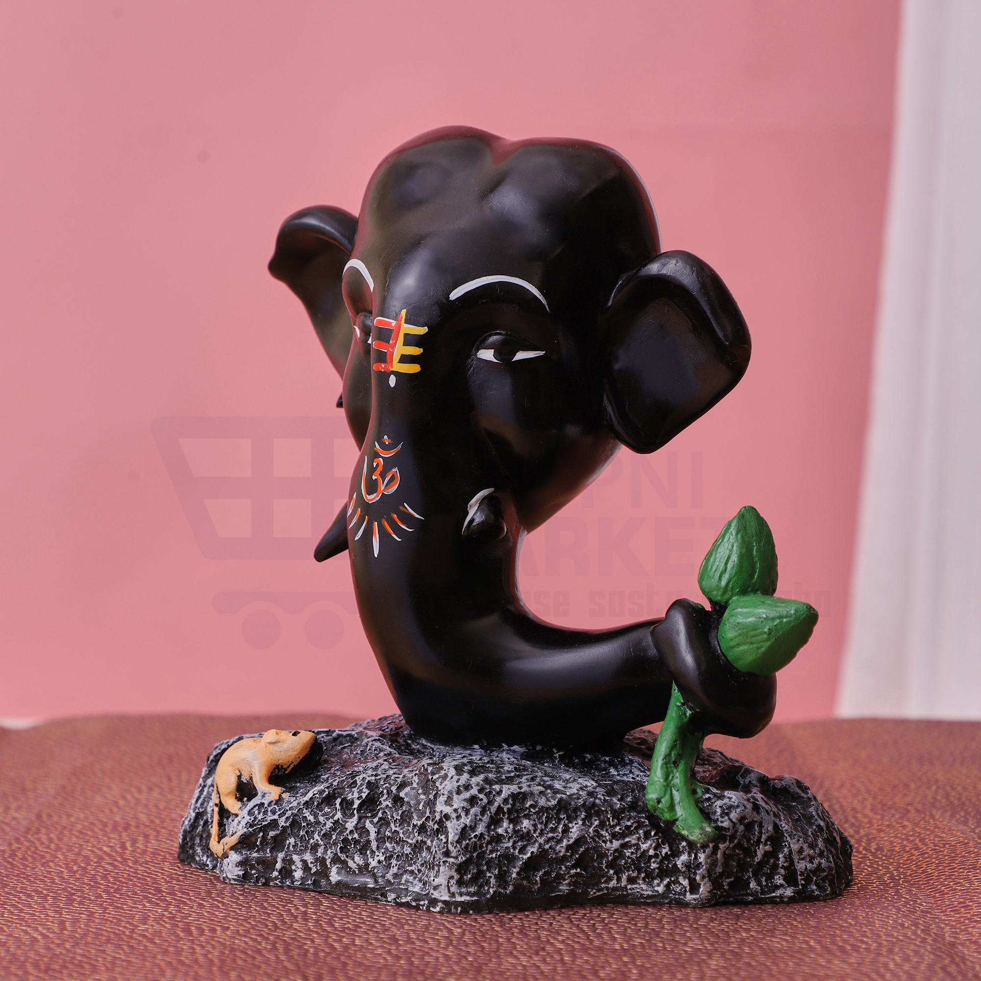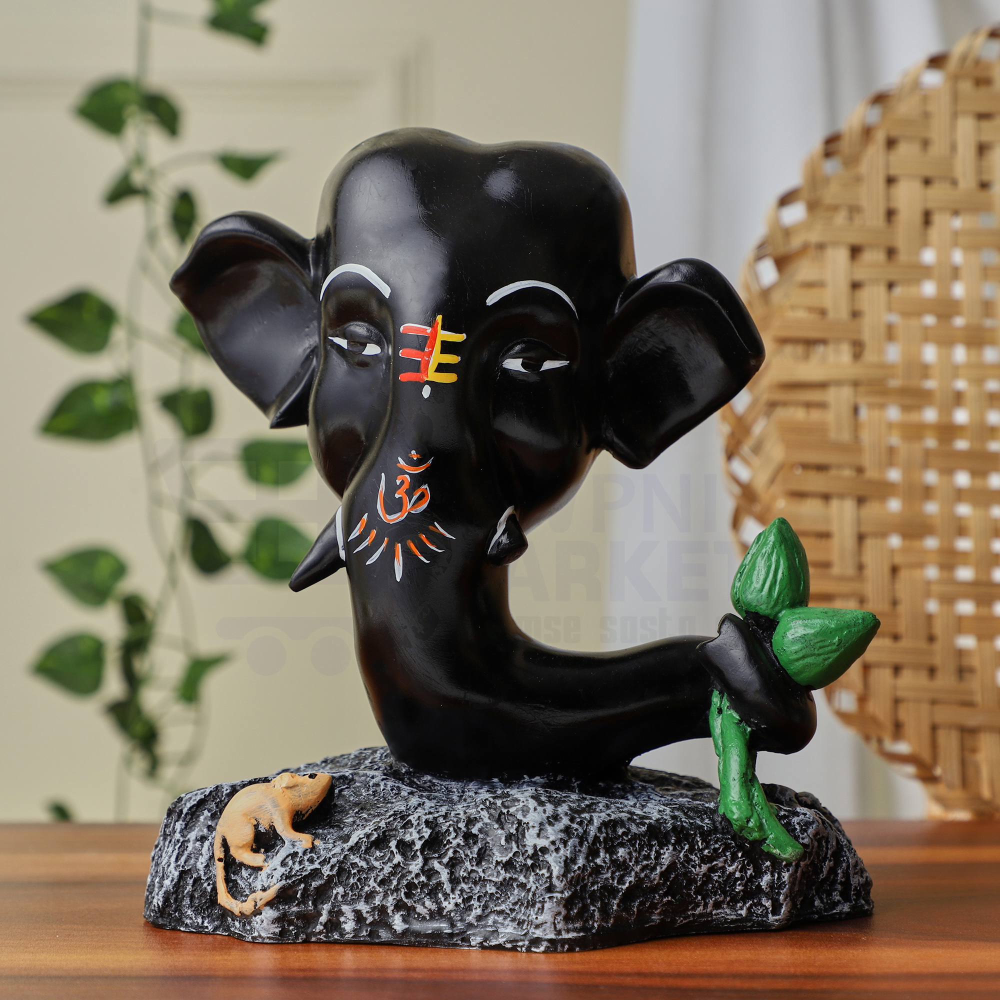 This is a black Ganesha idol, properly and neatly coated with high-quality “Lacquer”. This statue is made as per the preference of the majority of Lord Ganesha devotees. This Ganesh Ji Ki murti is carved with impressive design and style that has the ability to give your room a new appeal. The handwork, which is a very difficult job to do in small idols, has been done by our dedicated kaarigars who excel in detail aesthetics, and also the kaarigars are best in the industry.