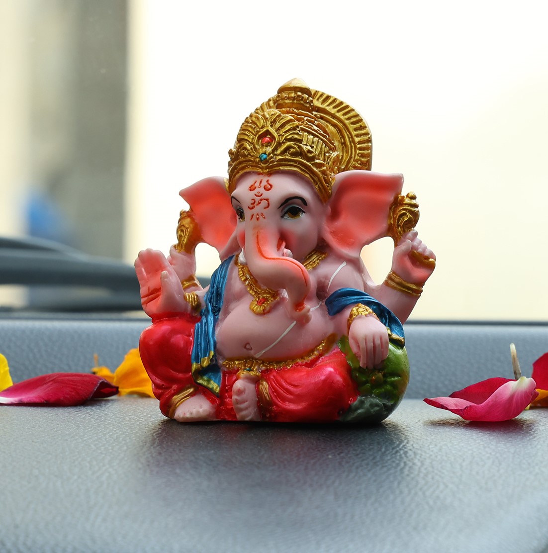 - Our Ganesha idol for car dashboard is not just a spiritual emblem but also a sophisticated car accessory for dashboard enhancement. Made from high-quality materials, this idol withstands the test of time, maintaining its vibrant appearance and intricate details even in the face of long journeys. This car dashboard idol is designed to complement various car decor accessories, creating a harmonious and aesthetically pleasing environment inside your vehicle.