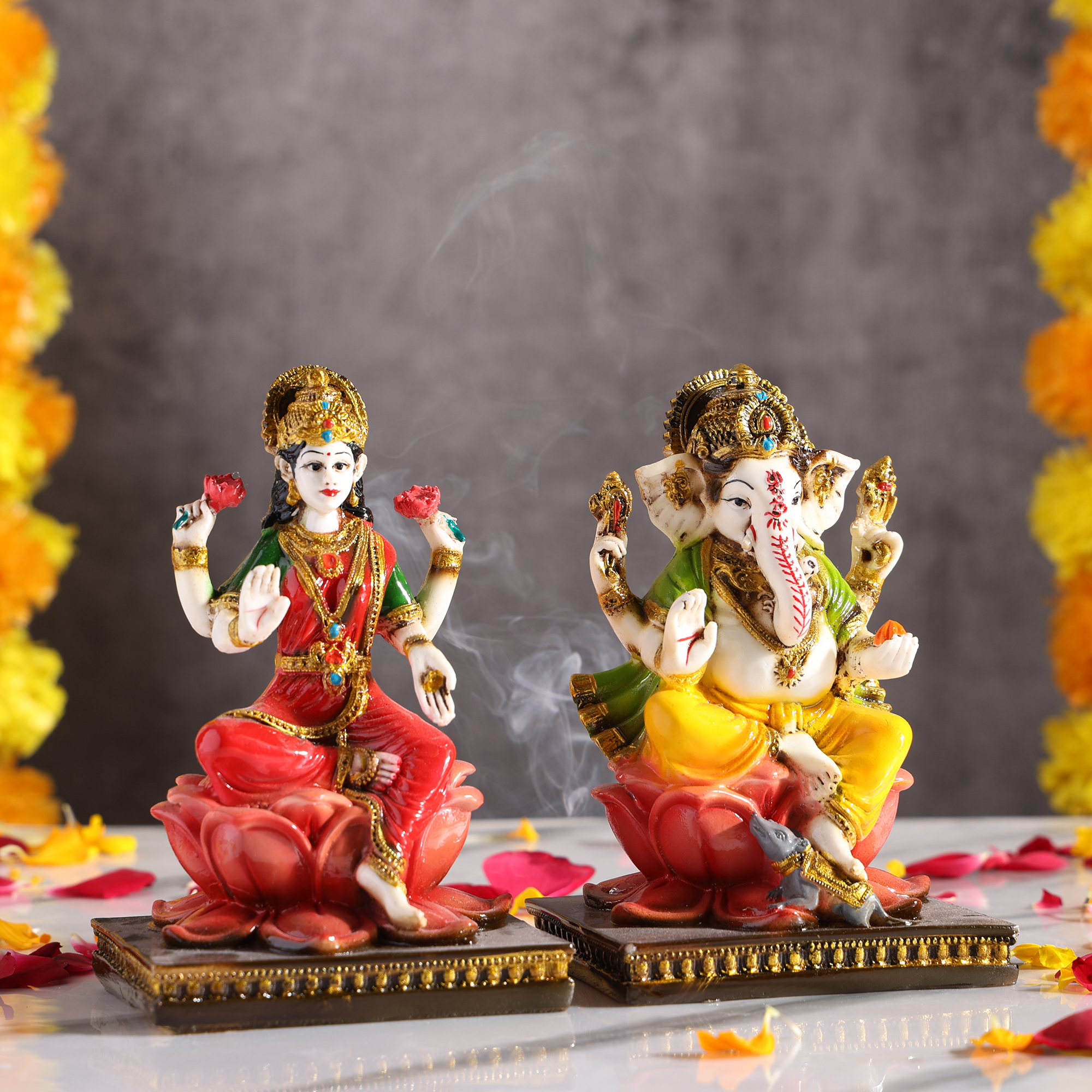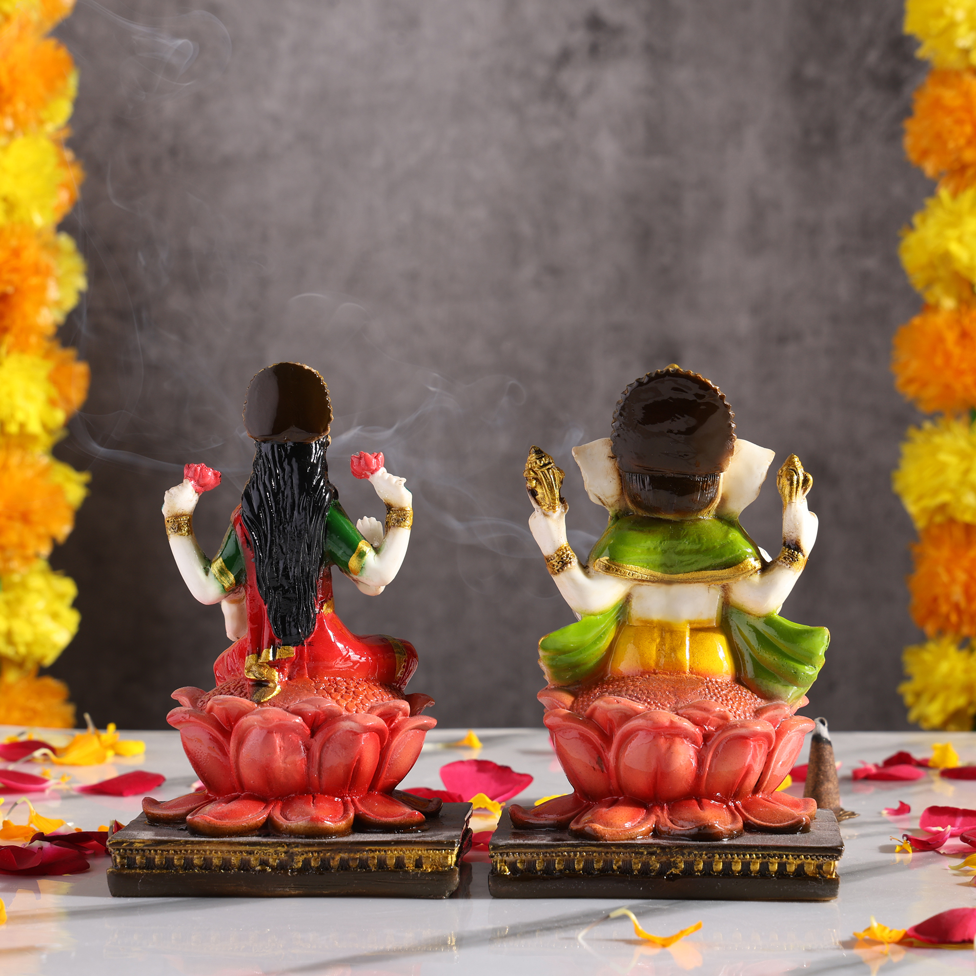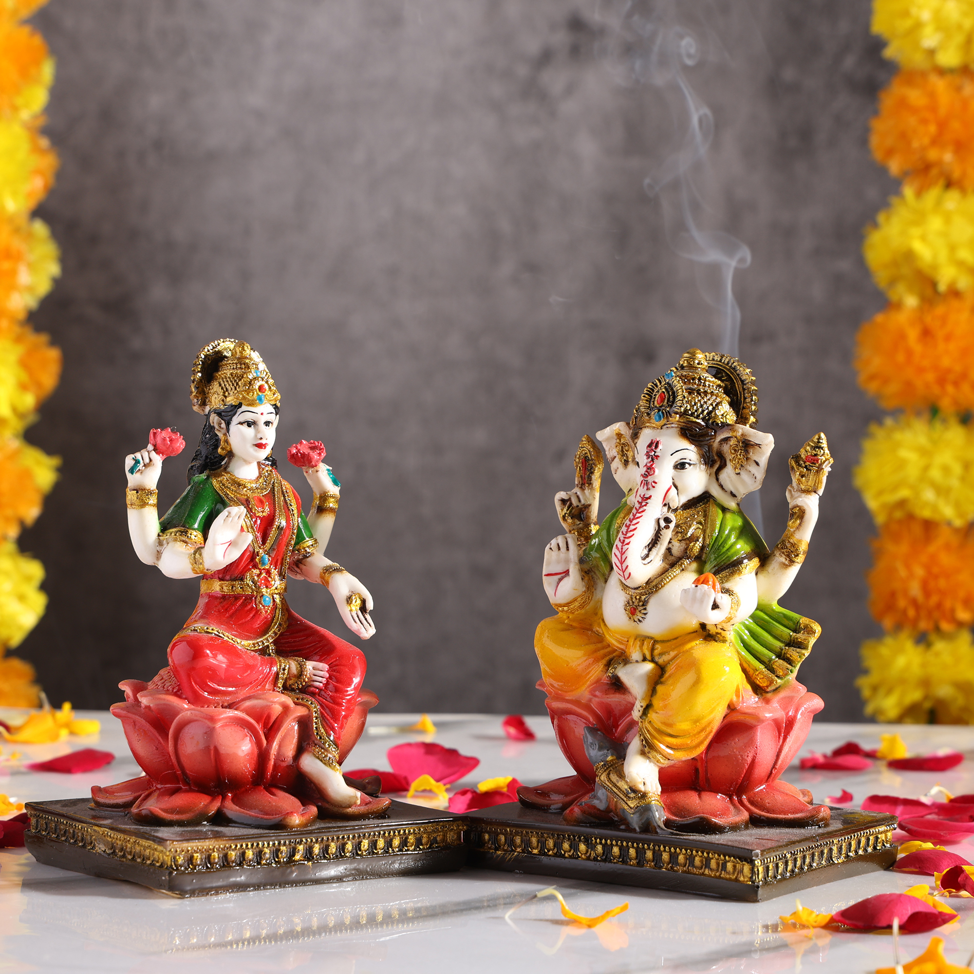Ganesh idol for home décor and Pooja room is widely worshipped as the Remover of Obstacles and more generally as Lord of Beginnings, Lord of arts and sciences, and the deva of intellect and wisdom. Goddess Lakshmi idol is known as the Goddess of wealth. This pair will induce positivity and divine blessings at your place.
