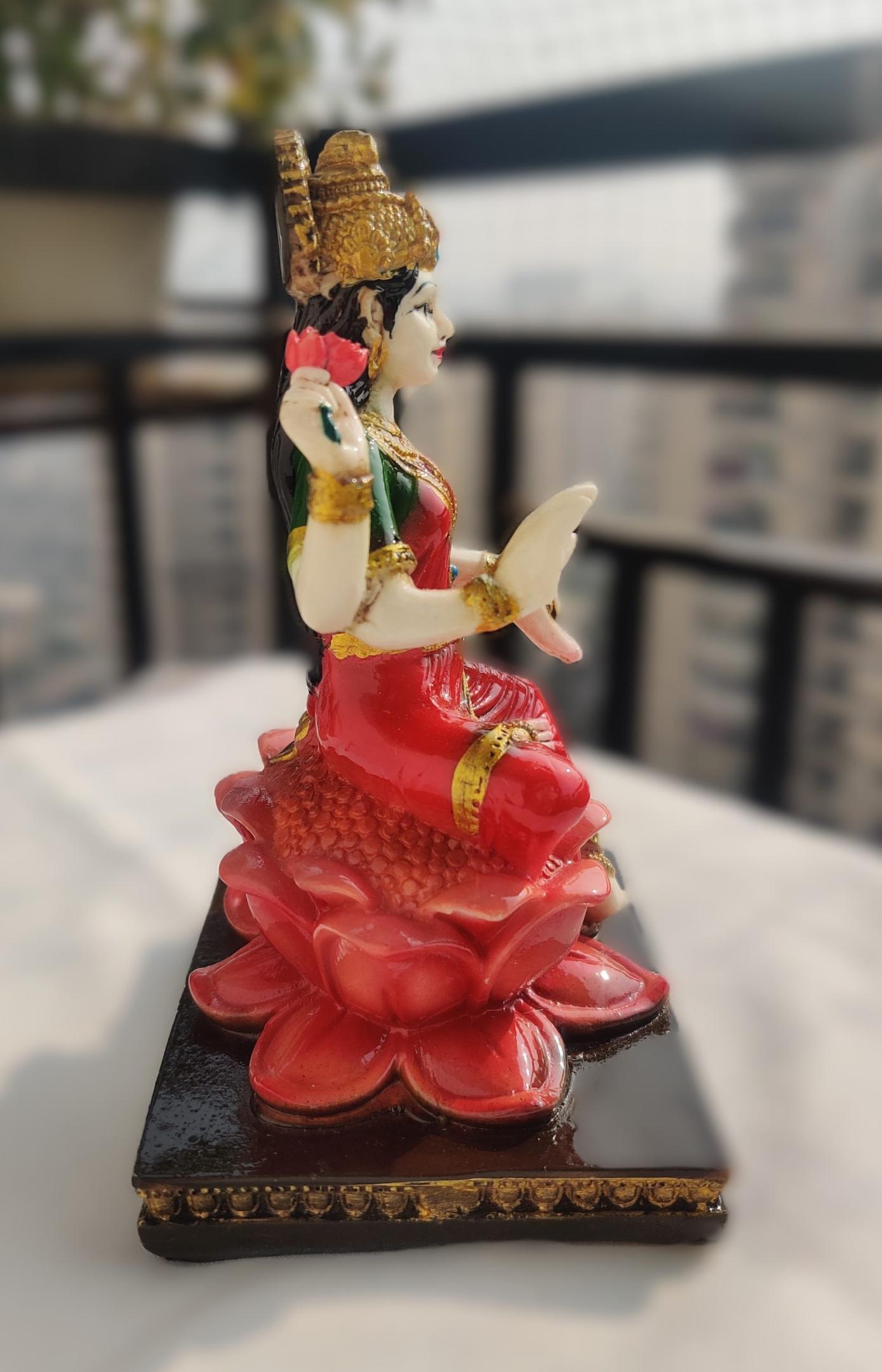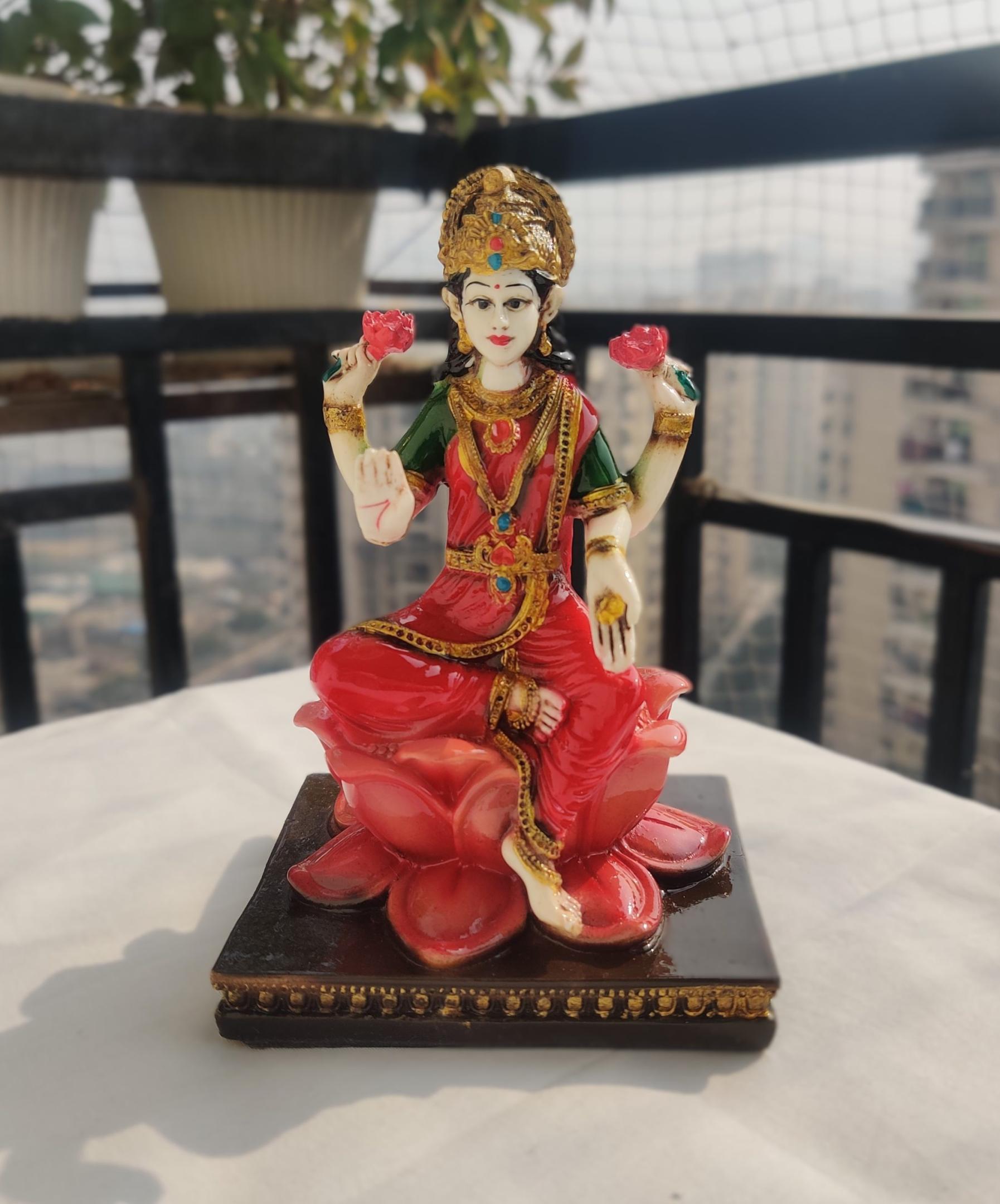 Apni market brings to you the Laxmi Mata idol which is made using quality materials and attractive designs. This Hindu Figurine showpiece is lightweight and durable and helps to uplift the beauty of the decor of your surroundings. It can be an ideal addition to your collection. The Laxmi Mata idol can be easily cleaned using a soft dry cloth. This Statue is carved with impressive design and style that has the ability to give your place a new appeal. This is a beautiful Goddess Laxmi Statue. This will induce positivity and divine blessings at your place. This will also add the spiritual dimension to the place. Goddess Laxmi is also known as the Goddess of wealth.